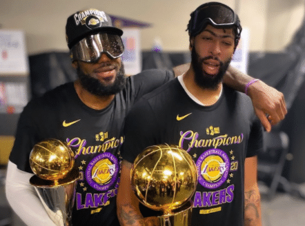值得一提的是,2020年在奥兰多复赛园区内,詹姆斯和浓眉带领湖人夺得队史第17座总冠军。
