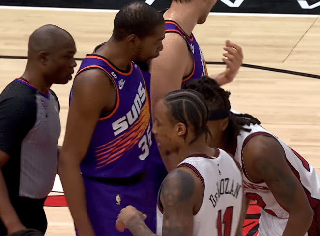 下半场,杜兰特第三节外线命中三分,之后二次进攻投篮得分,持球突破上篮,连得7分助太阳反超比分,公牛再次包夹KD,布克输送火力,连中三分以及高难度后仰跳投,单节贡献14分,三节打完,太阳94-85领先9分。