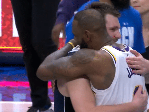 欧文错失超远续命三分后十分落寞,对于被逆转,库班脸色铁青太难受;湖人赢球,詹姆斯拥抱里夫斯、浓眉等队友庆祝胜利,詹眉拥抱前队友麦基开怀大笑,另外詹姆斯开心拥抱东契奇和欧文,他们都满脸笑容十分开心,尤其是詹欧拥抱,老詹十分兴奋。