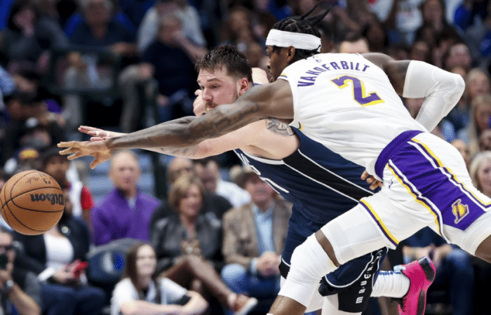 24直播网讯02月27日湖人客场27分逆转独行侠,詹姆斯和浓眉表现固然重要,湖人悍将范德彪也是赢球大功臣,全场出战27分钟8投6中拿到15分17篮板4抢断,在场正负值+17全场最高,而且主防东契奇在防守端立功;赛后基德直言范德彪打爆了我们。