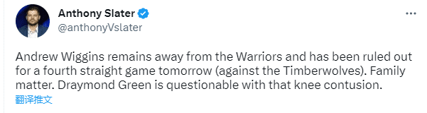 24直播网讯02月26日,勇士公布下一场对阵森林狼的伤病报告,维金斯因个人原因继续缺席比赛,库里、伊戈达拉和小佩顿因伤无法出战,格林因膝盖挫伤被列为出战成疑;究竟维金斯怎么了?暂未曝光,由于处理家庭事务,维金斯已经离开球队12天,连续缺席4场比赛。