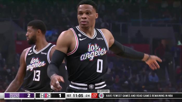 24直播网讯02月25日,威少正式迎来快船生涯首秀,搭档小卡、乔治、小莫里斯和普拉姆利首发出战,祖巴茨因病缺席比赛;威少和小卡都没有上场时间的限制,乔治则受到限时令;威少离开湖人后首次出战,第一节上场7分钟3投1中拿到4分2助攻1篮板1失误,连线乔治打进快船生涯首球。