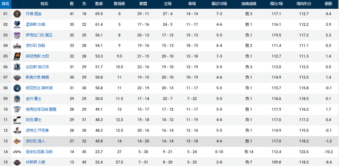 24直播网02月23日讯 NBA全明星结束之后,各队休战数天,一直到2月24日才有比赛,常规赛重燃战火,也进入到最后的冲刺阶段。西部的看点十足,目前除了第一的掘金和第二的灰熊之外,各队的位置都不稳固,排名西部第13的湖人都有机会进入到附加赛,甚至主帅哈姆在接受采访的时候表示球队的目标是西部前六,这样就可以避免参加残酷的附加赛。