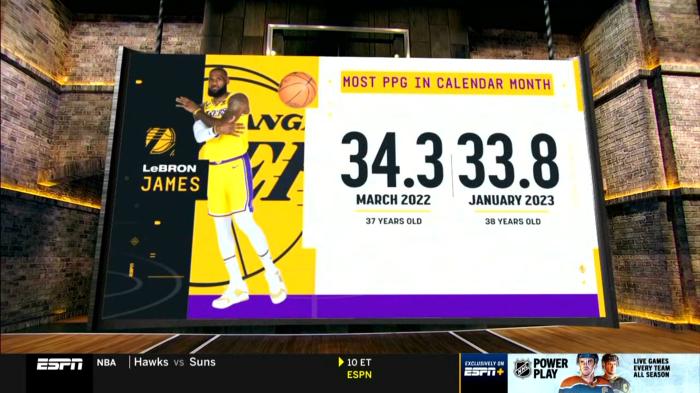 无论如何,詹姆斯加冕历史得分王倒计时,38岁仍旧打出不可思议的表现,据统计,詹姆斯在一月份场均拿到33.8分,是其生涯单月第二高场均得分,单月场均最高得分是他2022年3月创造的,当时老詹37岁场均34.3分。