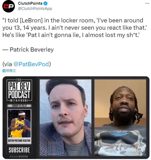 今日贝弗利谈到詹姆斯绝杀被犯规遭漏吹这件事,表示:我在更衣室里告诉他,‘我在你身边13、14年了,兄弟。我从未见过你作出那种反应。’他说,‘帕特,我不会撒谎,我差点就失去了理智。’恕我直言,他应该那么做,他应该做出更激烈的举动。