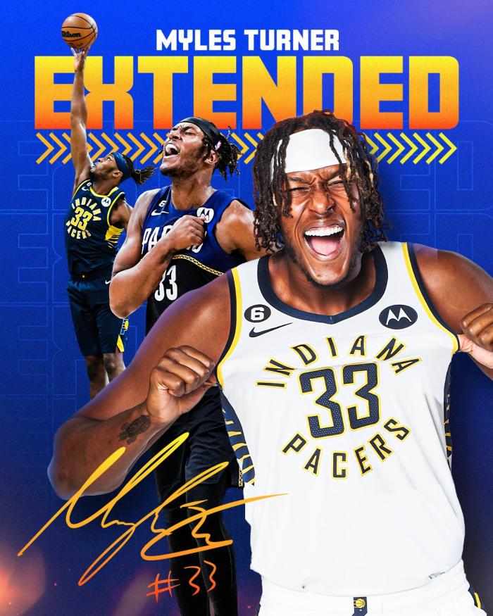 26岁的迈尔斯-特纳正式续约,根据之前的报道,特纳和步行者提前续签2年6000万美元的新合同,其中有1710万美元以涨薪的方式在本赛季发放,涨薪后特纳本赛季年薪是3500万美元;23-24赛季年薪2090万美元和24-25赛季年薪1990万美元。