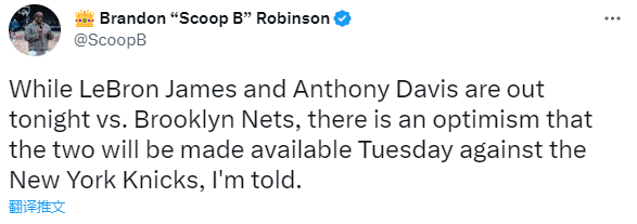 24直播网01月31日讯 ,据名记Brandon Robinson报道,詹姆斯和浓眉预计将会出战下一场与尼克斯的比赛;换言之,詹眉都不会缺席很久,预计明天复出战尼克斯;此前哈姆曾表示浓眉休战是湖人计划内的事,詹姆斯则是因脚特别酸痛才休战的。