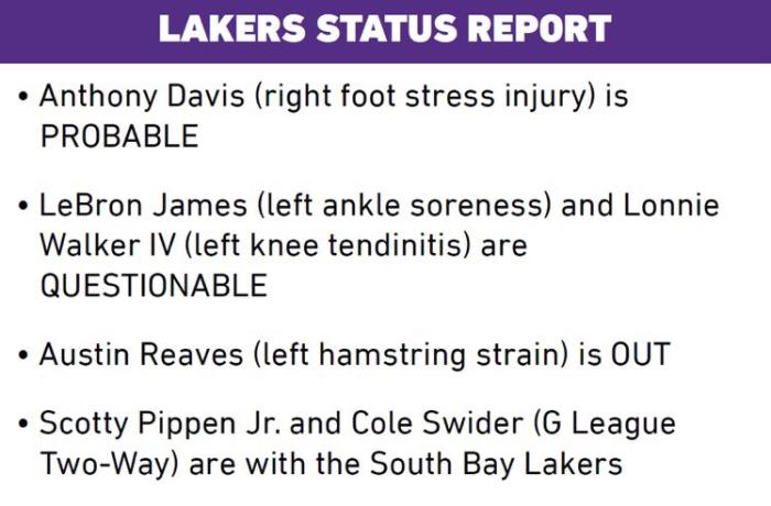 湖人官宣战绿军伤情:詹姆斯出战成疑 浓眉大概率出战至少3人缺席