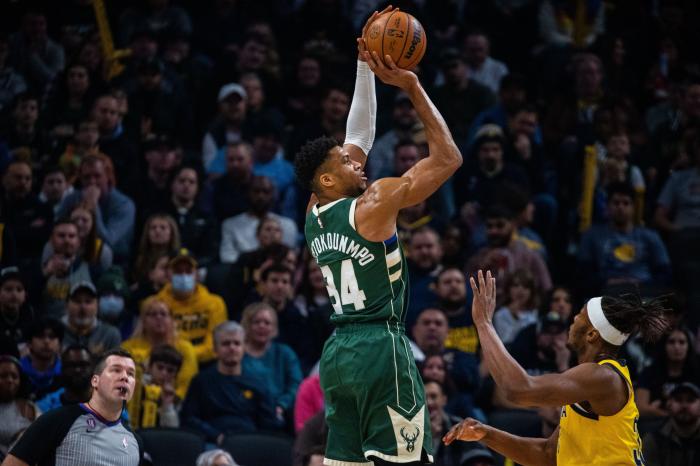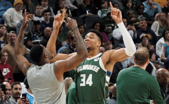 末节,字母哥不断持球杀到禁区得分,尤其是反击中打成逆天的滑翔隔扣2+1,字母哥如此一球太疯狂,点燃替补席,字母哥也陷入庆祝之中。