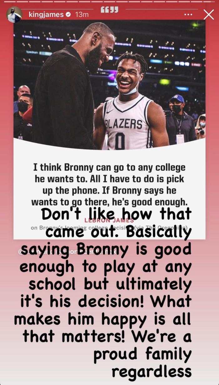 詹姆斯一通电话就能让布朗尼加盟任何大学吗?如此言论引争议,老詹本人辟谣:我不喜欢那篇报道的出炉方式。我基本上就是在说布朗尼足够优秀到去任何学校打球,但最终决定权在他!我们想要的只是他能获得快乐!他是我们全家的骄傲!