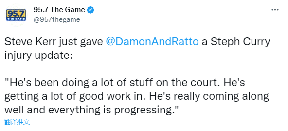 对于库里的伤情,科尔透露:库里一直在进行很多有球训练,完成得很出色。伤势恢复顺利,一切都在往好的方向发展。