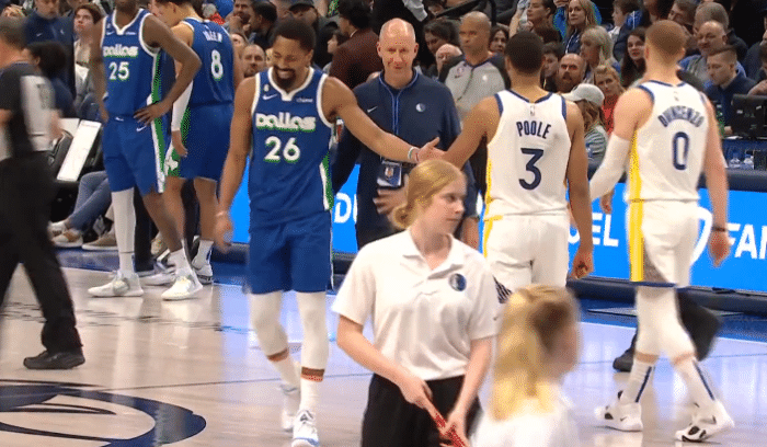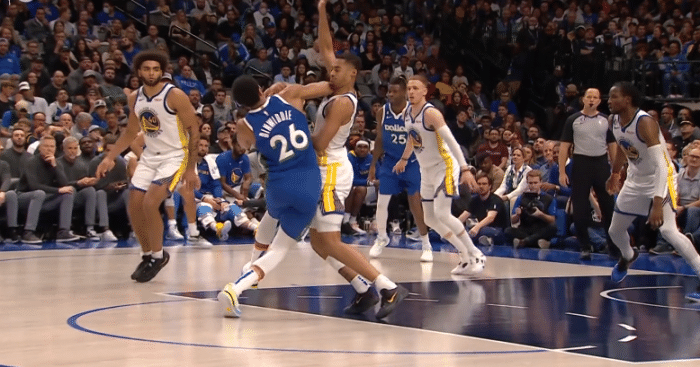 24直播网11月30日,NBA常规赛独行侠对阵勇士,第四节场上发生意外事件,丁威迪肘击普尔的下巴吃到二级恶意犯规,直接被驱逐离场。