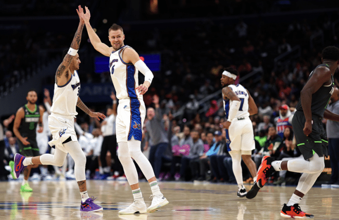 24直播网11月29日,NBA常规赛奇才打爆森林狼,波尔津吉斯打出疯狂一战,全场出战30分钟18投12中、三分10中6、罚球11中11拿到41分4篮板3助攻3盖帽2抢断,迎射戈贝尔、大帽唐斯,波神打爆森林狼2.05亿双塔,一战创多项纪录;唐斯伤退,仅拿到8分4篮板,戈贝尔19分7篮板。