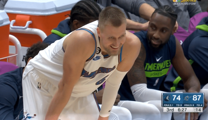 波尔津吉斯开场迎着戈贝尔轰进三分,并且连续命中3记三分,再加上库兹马和比尔输送火力,波神命中个人第4记三分,奇才21-6打爆森林狼,之后狼队反扑,第一节33-38落后5分,波神单节投进4记三分独砍16分2抢断1盖帽,禁区大帽唐斯。