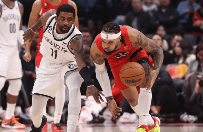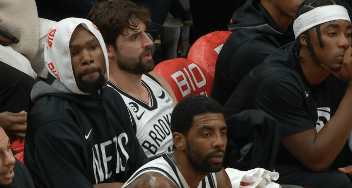 整个上半场,篮网三巨头带队却打得很糟糕,半场13次失误以及被猛龙抢到11个进攻篮板。