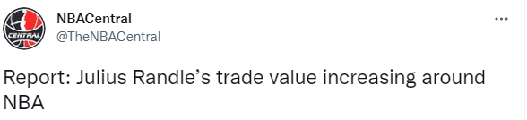 东部匿名高管表示:现在兰德尔的交易价值变高了,因为(布伦森的到来让)尼克斯减少了兰德尔的持球次数,他身上的压力也变小了,这让兰德尔能专注于抢篮板与投篮,他不用再操心每一件事情。兰德尔的投射变得更出色了,这一点给他的价值带来了帮助,每一次合同年他的交易价值都会水涨船高。所以到赛季末时,他的交易价值可能还会更高。但最大的问题是兰德尔的防守,这阻碍了他的发展。
