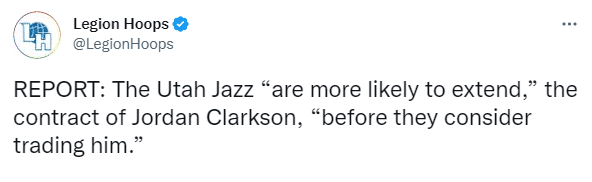 名记Marc Stein报道,一位对手球队的官员透露,爵士在考虑交易克拉克森之前,很可能会先与他完成续约。
