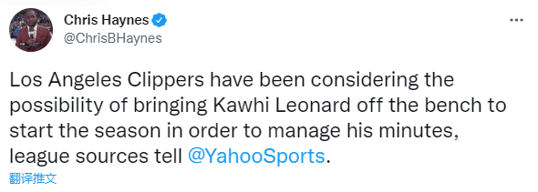 虽然詹眉因小伤都在伤病名单上,但预计他们都不会缺席洛城德比战;反观快船,泰伦卢表示快船全队都可以出战,詹姆斯和小卡时隔2年再次交手,不过据名记Chris Haynes报道,快船一直在考虑让莱昂纳德从替补打起的可能性,以管理其出场时间。