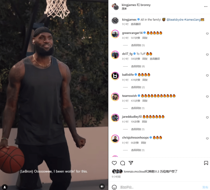 詹姆斯宣布并且恭喜布朗尼又签约代言合同,如此动态引热议,施罗德、杜德利、JR-史密斯、维特斯等人都在评论区直言太火了;另外詹姆斯的小儿子布鲁斯转发视频并且写道:爸爸和哥哥太棒了。