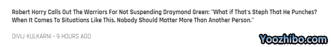 罗伯特-霍里公开表示:我认为德拉蒙德-格林应该被禁赛。设想一下,如果你在NBA比赛中拳打别人,你也会被禁赛,对吧?如果追梦打的是库里呢?情况就不一样了,因为他打的是库里。库里是联盟顶级球星,是勇士队的门面,也可以说是联盟门面。如果追梦打的是库里,那么每个人都会牵涉其中。