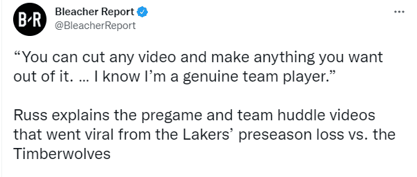威少对此表示:这种赛前仪式是我整个职业生涯都在做的事情,你可以剪辑任何视频,并从中制作任何你想要的东西,我知道我是一个真正的团队合作者。