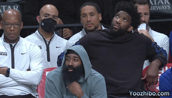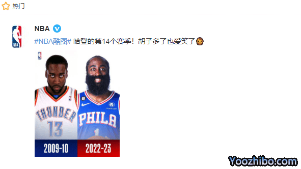 这场比赛哈登没有出战与老东家的比赛,他在场边和恩比德一起坐着,不断玩弄自己的胡子,正好今天NBA官方还发布了哈登的胡子对比照片,称:“哈登的第14个赛季!胡子多了也爱笑了”