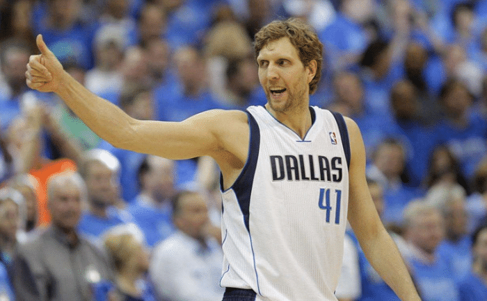 诺维斯基21年职业生涯全都为独行侠(以前叫小牛)效力,总共出战1522场常规赛,场均拿到20.7分7.5篮板2.4助攻,14次入选全明星、1次常规赛MVP、1座总冠军和1座FMVP奖杯,41号球衣早已被独行侠退役。