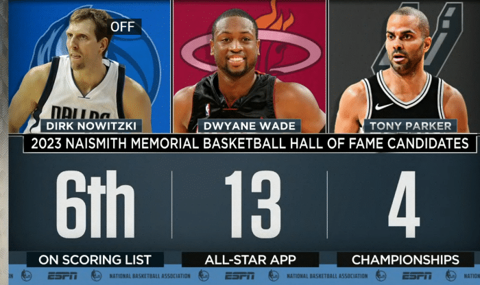 24直播网09月13日,在ESPN《NBA Today》节目中,众人讨论了明年名人堂的潜在人选,诺维斯基、韦德和帕克三大球星领衔,两大名记Brian Windhorst和Ramona Shelburne都认为他们三人明年能够直接入选名人堂。