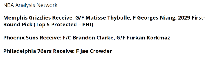 76人零换整方案出炉,保罗绝配搭档也适合哈登!灰熊坐收渔利