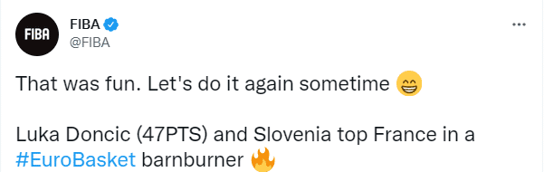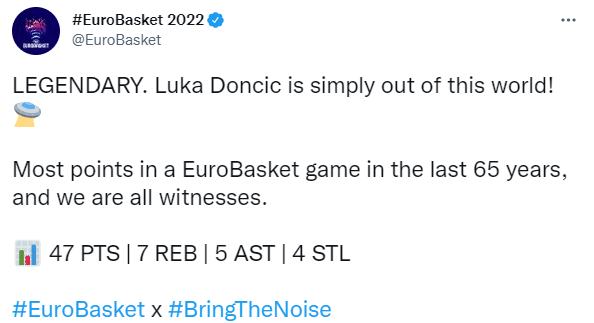 东契奇疯狂表现引热议,FIBA、欧洲杯官推、独行侠官方都盛赞东契奇。