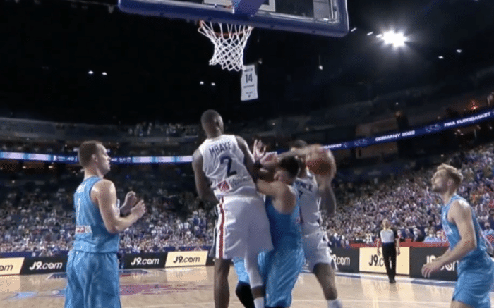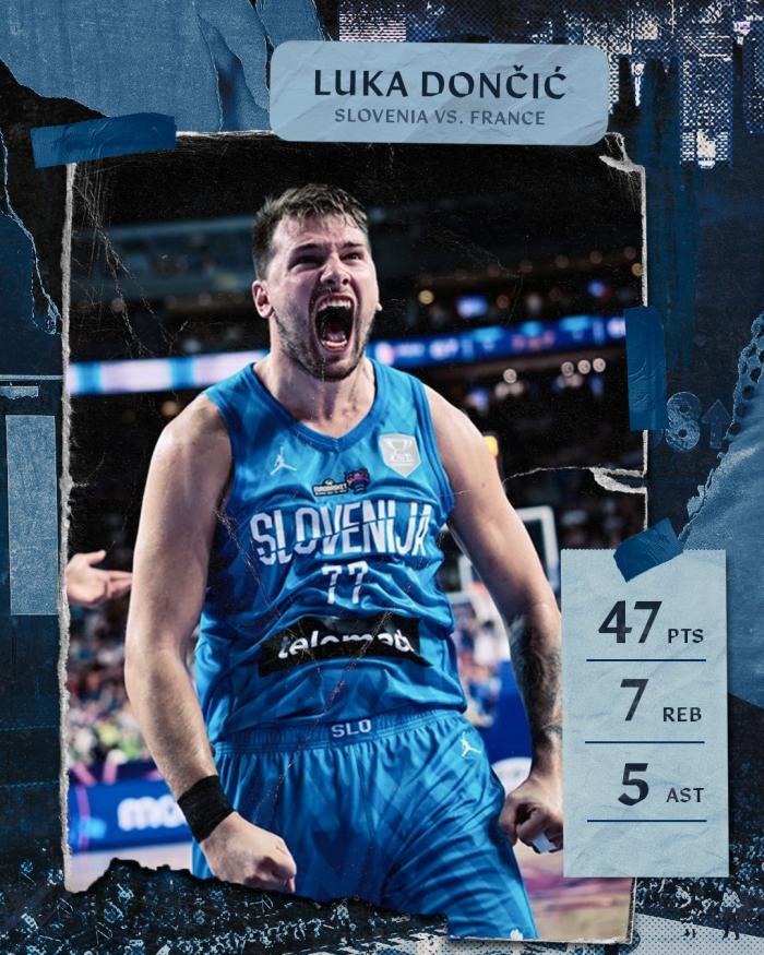 面对强大的法国,东契奇火力全开,面对戈贝尔和富尼耶的报价仍投进不可思议的三分球,多次单挑对手命中后撤步三分,露出发狠表情疯狂庆祝;东契奇持球杀到禁区以及背打得分,末节关键时刻,东契奇迎着戈贝尔再中三分,此时卢卡大笑庆祝,全场轰下47分并且带队战胜法国,小组赛4胜1负锁定B组第一。