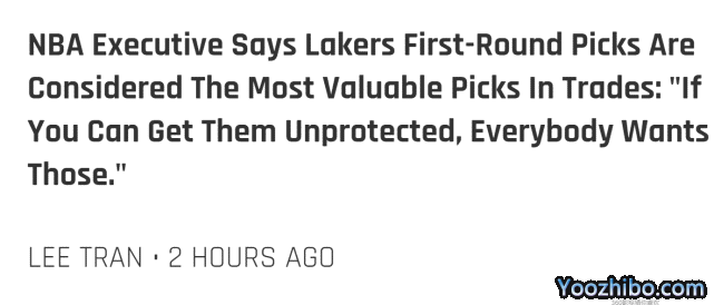 24直播网09月05日讯 ,一位NBA高管接受记者Sean Deveney的采访,谈到了湖人的两个首轮签,在他看来,这是联盟中的选秀权里最有价值的。