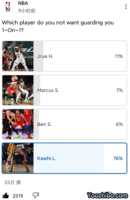 25万球迷参与!NBA票选不想和谁1V1?莱昂纳德碾压,本西垫底