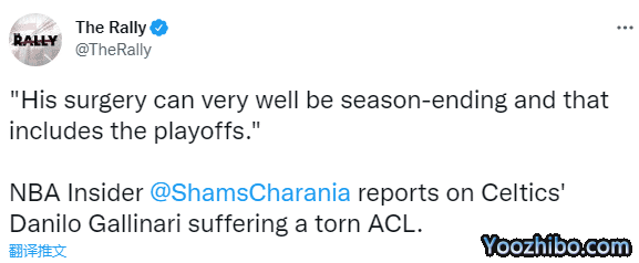 加里纳利本人发声:这对我来说是艰难的一周,因为我了解到我的伤到了什么程度。篮球对我来说意味着一切,不能和凯尔特人的队友们一起在球场上打球让我很伤心。