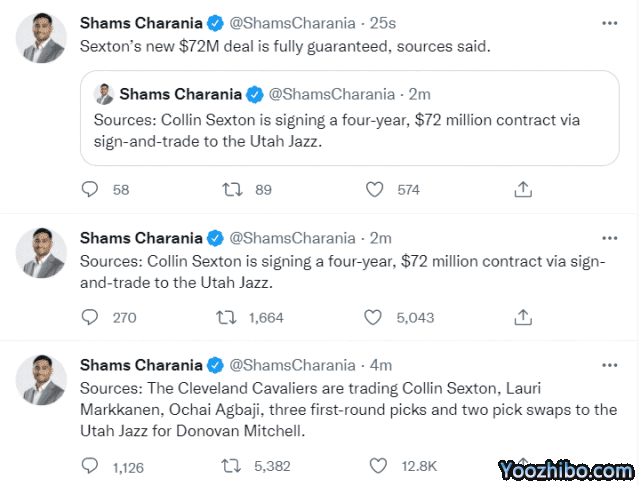 24直播网09月02日讯 ,据名记Shams和Woj报道,骑士和爵士达成了一笔8换1的交易协议,骑士送出3个无保护的首轮签(2025年、2027年、2029年)、2个首轮互换权(2026年和2028年)、马尔卡宁、塞克斯顿、阿巴基,得到爵士的米切尔。塞克斯顿签下4年7200万美元的合同,全额保障,以先签后换的方式加盟爵士。