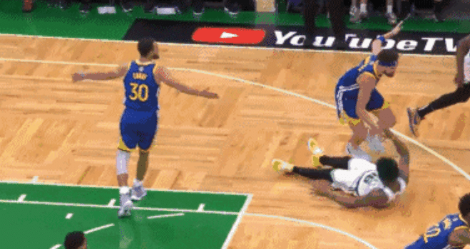 斯玛特非常抢镜,他在一个进攻回合中造成了库里和克莱的犯规,第一次是他准备持球,被库里推了一下,摔出去很远。随后在卡位的时候,斯玛特又一次倒地,这次是吹罚的克莱犯规。库里和克莱都摊手不满,场边的科尔更是情绪激动,伸出2个手指头,表示斯玛特连续2次假摔,确实暴怒的状态。