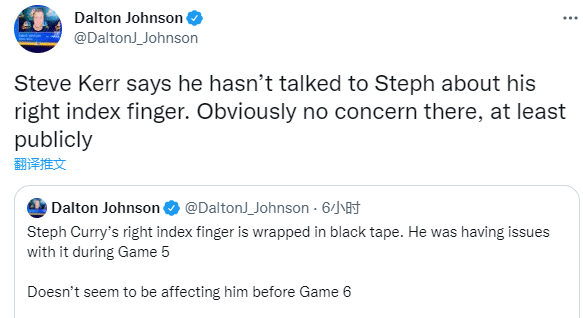 总决赛G5天王山一战,库里全场22投7中、三分9中0仅仅拿到16分,进攻状态糟糕的一大原因可能是他的右食指有点小问题,不过很明显,库里的手指只是一点小伤,不影响他参加比赛。