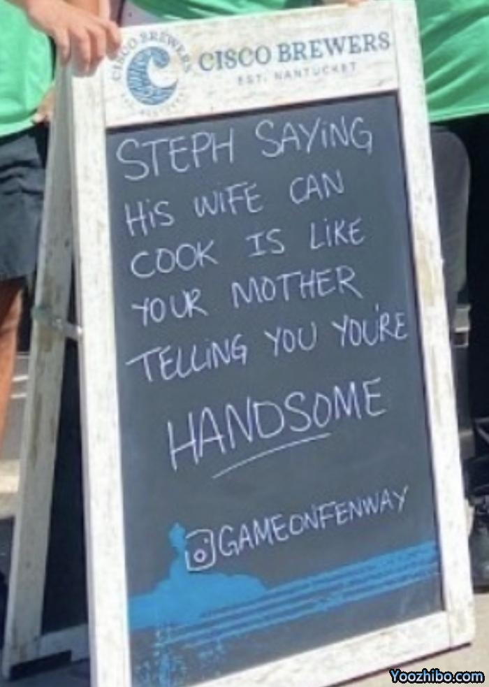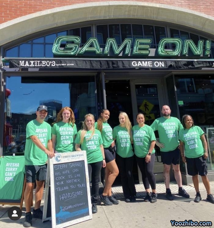 24直播网06月16日讯 ,勇士和凯尔特人G6大战的前一天,绿军球迷再次嘲讽库里的爱妻不会做饭,这一次,凯尔特人多名球迷身穿印有“阿耶莎-库里不会做饭”的特制T恤合影,并在店门口的招牌上写道:阿耶莎-库里仍然不会做饭!库里说他老婆会做饭就像你妈说你很帅一样!