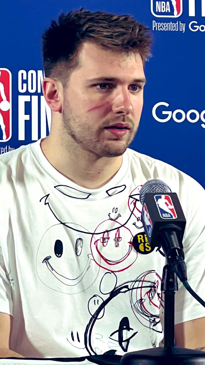 赛后接受采访时,东契奇脸上的血痕伤疤十分清晰,谈到破相时,卢卡表示:还不错,这让我看起来像个硬汉。