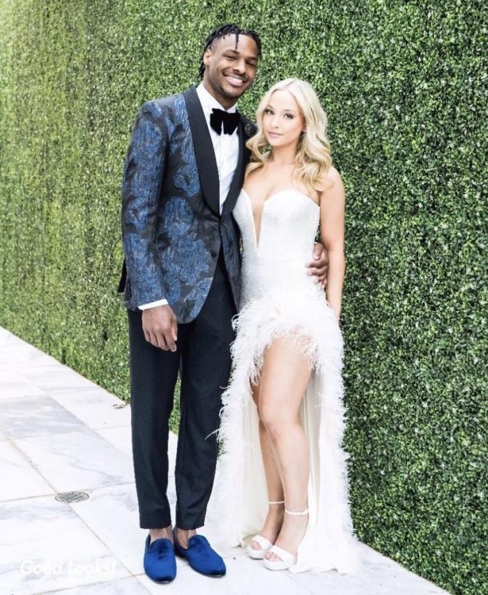 17岁的布朗尼盛装出席舞会,开着他的豪车,带着女友一起参加舞会,期间两人亲密合影,布朗尼满脸笑容十分开心;据说布朗尼的女友身穿1米6左右,詹姆斯已经为他们置办了豪宅,换句话说,他们已经同居了。