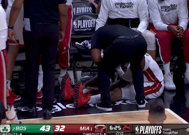 24直播网05月18日讯 ,NBA季后赛分区决赛正式打响,凯尔特人反客为主,热火打得很被动,第二节场上发生意外伤病事件,热火悍将PJ-塔克无接触受伤倒地,右脚受伤,一瘸一拐离场并且返回更衣室,下半场继续首发出战,太硬了。