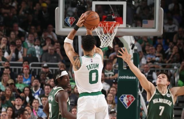 24直播网05月14日讯 凯尔特人客场108-95击败雄鹿,将总比分扳成3-3平!塔图姆迎来大爆发,轰下46分9篮板4助攻,投篮32中17,三分15中7,第一时间冲上全美热搜的第一位。塔图姆太疯狂了,美媒感慨:就像巅峰时期科比。塔图姆的强势发挥,也让字母哥的44分20篮板沦为空砍。比赛中,塔图姆送出霸气飞吻,在客场的舞台上成为英雄!