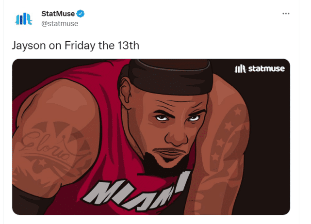 末节,雄鹿一度将分差缩小到6分,这时候塔图姆挺身而出,连拿11分,在绿军最需要塔图姆的时候,他站出来了,而且帮助球队锁定胜局。有美媒说塔图姆像科比,也有美媒说他像热火詹。StatMuse晒出了詹姆斯的卡通图,表示这就是今天的塔图姆!