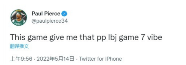 看了这样一场精彩的对决,看到塔图姆和字母哥之间的巅峰对话。NBA名宿皮尔斯更新个人推特写到:“这场比赛让我想起了往日和詹姆斯打抢七的时光。”