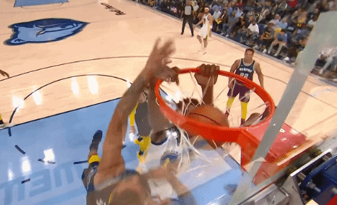 第二节还剩9分30秒左右时,普尔突破传球到外线维金斯。维金斯眼见时间不多,晃开了防守的琼斯直接突入内线。此时灰熊球员克拉克起跳准备补防。但没有想到一向以来温文尔雅的维金斯平地起惊雷,高高跃起来了一记泰山压顶,直接隔扣了克拉克!