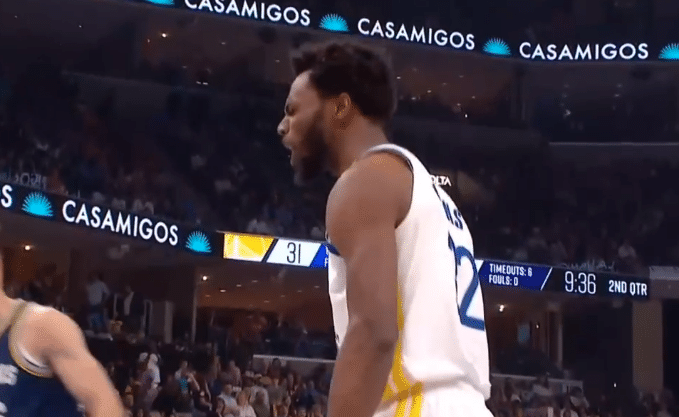 这记隔扣实在非常残暴,而当扣篮的球员时维金斯时,喜剧感和暴力感更是拉满!克拉克直接被扣翻在地,颜面尽失!而勇士的替补席也瞬间沸腾,纷纷起身挥毛巾庆祝。坐在场下休息的库里同样非常兴奋!他起身挥拳激情怒吼,祝贺维金斯的这记疯狂隔扣。