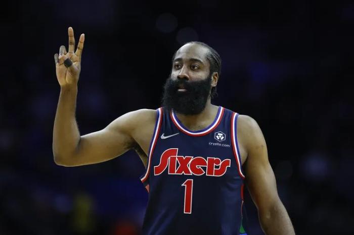 第三节最后一攻,76人以失误而告终,此时哈登瞪大双眼、怒视队友宣泄情绪。