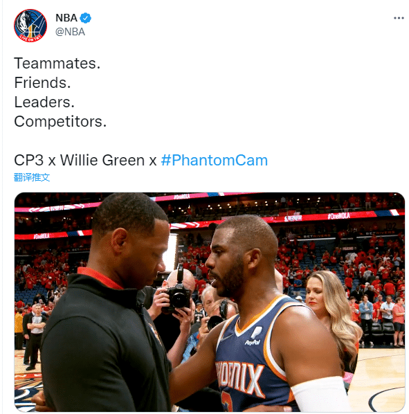 从1胜12负到杀进季后赛并且和联盟第一的太阳大战六场,威利-格林证明自己的执教能力,他的演讲也十分鼓舞全队;G6出局后,威利-格林先后拥抱保罗、布克以及蒙蒂等人,鹈鹕主帅激动地哭泣,满脸泪水太感人;赛后谈到与威利-格林时,保罗的声音哽咽,被鹈鹕主帅的哭泣声感染了。