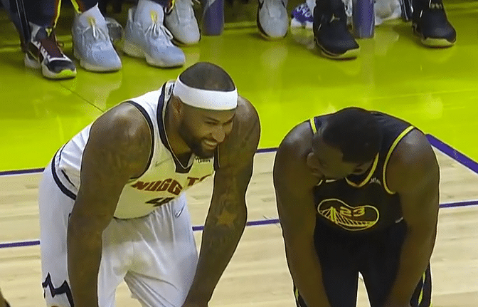 德雷蒙德-格林劈扣得分,约基奇抛投回应,库里三分命中,约基奇抛投再中,克莱造犯规两罚全中,卢尼顺下上篮得分,克莱抢断,维金斯反击一条龙上篮得分并且造成了犯规,勇士取得5分的领先,戈登进攻犯规撞倒了格林,随后两人发生小冲突,裁判吹罚戈登技术犯规,勇士连续进攻不,戈登上篮打中并且造成犯规,普尔超远三分命中,莫里斯三分回应,库里上篮得分,里弗斯身体不适反回更衣室。