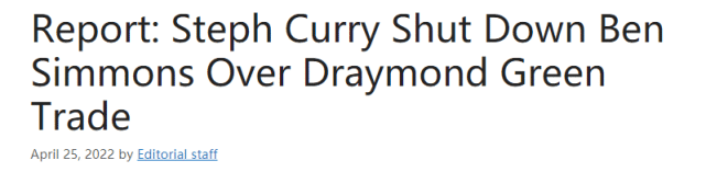 24直播网04月26日讯 ,在最新一期的节目中,名嘴斯蒂芬-A-史密斯爆料称,消息人士透露,费城76人曾想用西蒙斯换追梦,而这一提案被库里否决了。